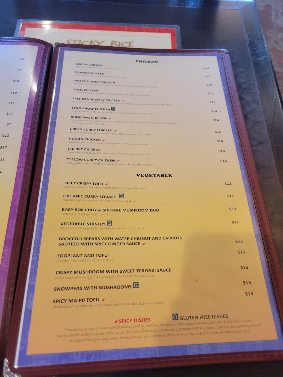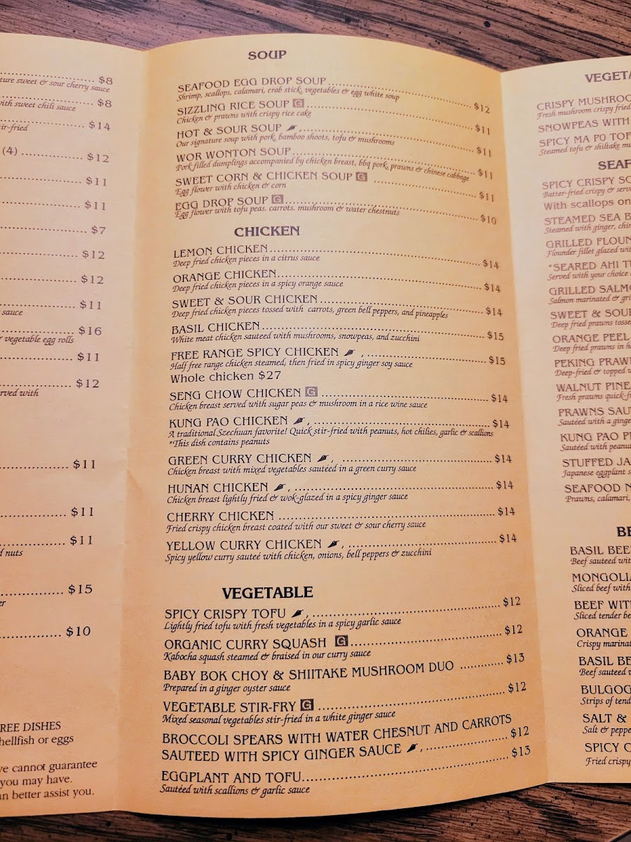 I ordered the Pot Stickers, Basil Chicken, and Combination Fried Rice. Potstickers had a nice browned bottom, though a few felt a little doughy. They were still good and I'd recommend them. I have never had Basil Chicken, but other reviewers suggested this dish, and it's an excellent choice. Very flavorful. The combination fried rice was good, but the Basil chicken is where it's at. Ended the meal with the vanilla ice cream. Very nice restaurant and staff. Highly recommend.