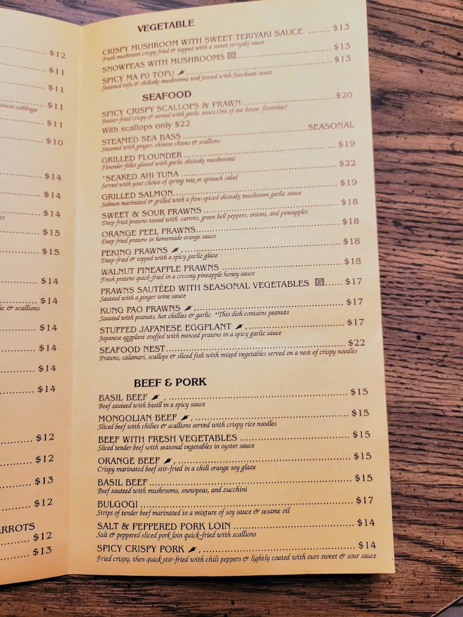 Tried this place on a whim after trying other local joints for dinner. This restaurant takes 1st place in the area in our book. Smiling, kind and attentive, Norma our waitress did a fantastic job. She offered helpful suggestions when asked and kept my drink refilled. The Mongolian beef and walnut pineapple prawns were divine. The walnuts were toasted impeccably! We look forward to our next chance to dine in again.